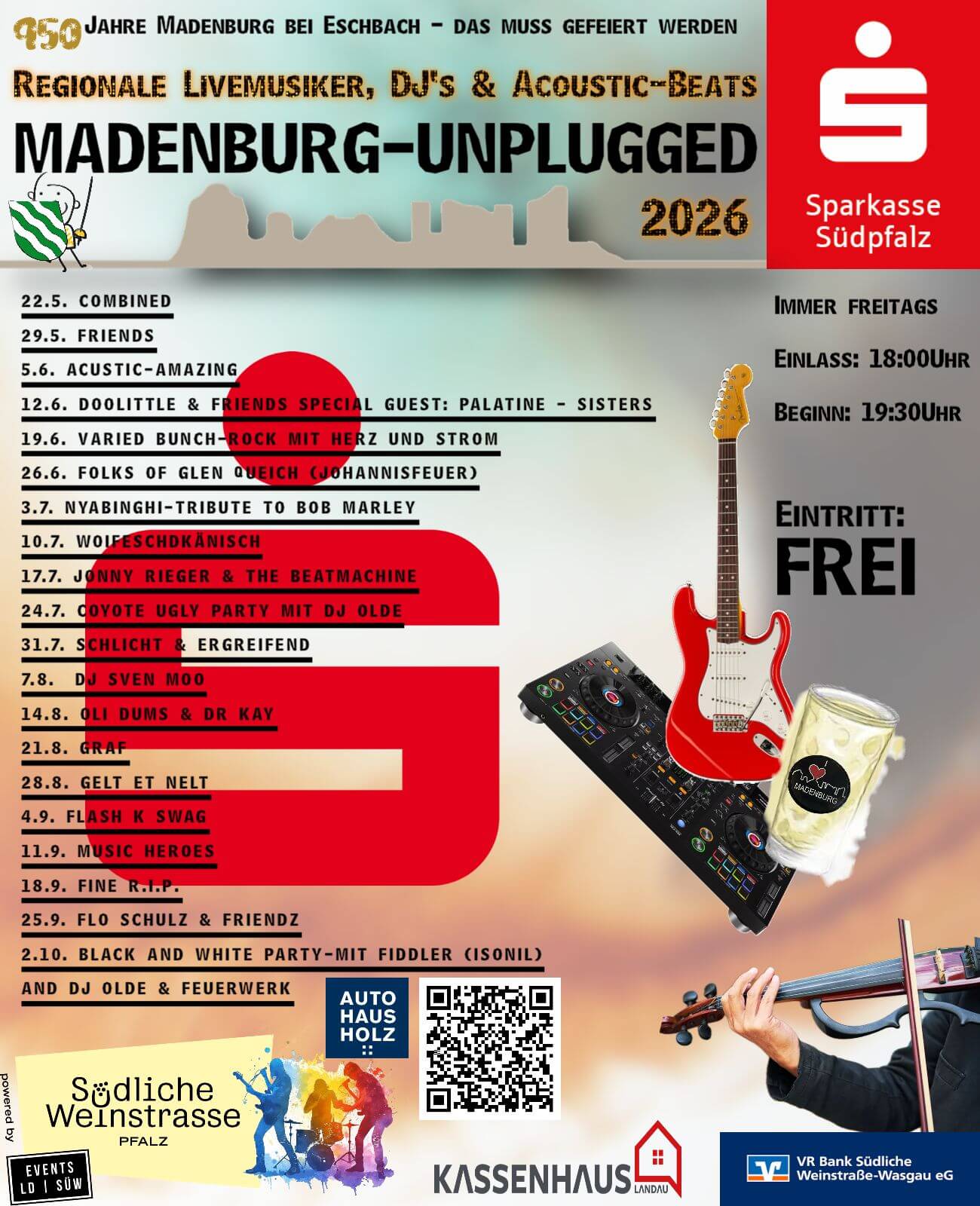 Die Madenburg ist ein beliebtes Ausflugsziel für jung und alt. Schon der Rundblick auf die Rheinebene, oder rückseitig in den Wasgau, lässt den Besuch zu einem unvergesslichen Erlebnis werden. Abgerundet wird ihr Besuch durch unsere bodenständige Pfälzer Küche und unsere gepflegten Weine der Region Südliche Weinstraße, aus unserer kleinen Burgschänke mit Terrasse. Für Festlichkeiten öffnen wir unseren Saal im Zeughaus (ca. 80 Pers.) für Sie. Unsere Homepage lädt sie nun zu einem virtuellen Überblick ein.